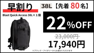 38L【特別割】20%OFF (先着200名)旅する人のためのバックパック