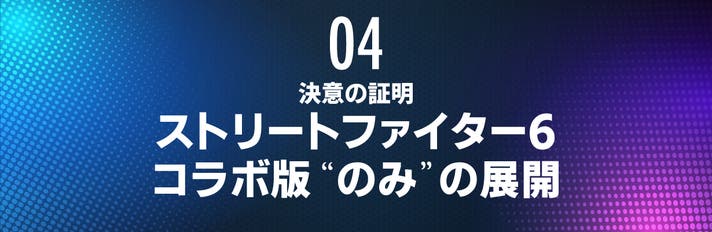 対戦のマッチング直前、両手が離せない、視線も外せない。そんな極限の集中が求められるゲームの代表として、ストリートファイター6がありました。「キャラクターをあしらったからこの形になった」のではなく、「コンマ数秒の判断が必要な現場に合わせた結果、この形になり、その象徴がスト6であった」のです。「この考え方が本当に現場で通用するのか」を確かめるため、あえて逃げ道を作らず、このストーリー一本で勝負することを決断しました。