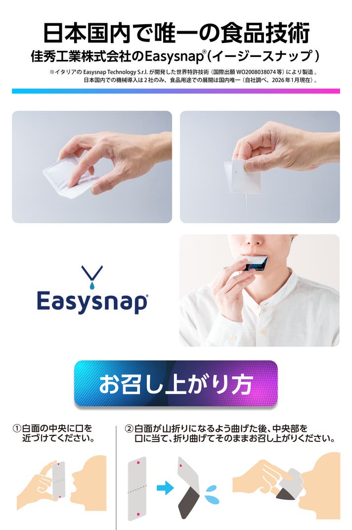- 「パキッ」「チュッ」で集中を途切れさせない。片手0.5秒スマート補給の新発想エナジードリンク