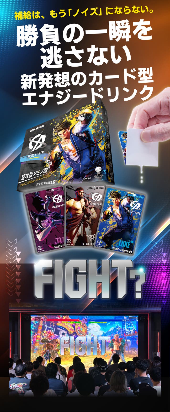 eスポーツの現場には、”集中を保ち続ける”ことが求められる瞬間が何度も訪れます。私たちは、そうした選手たちの想いに寄り添い「カード型ドリンク ENERGY ARTS(エナジーアーツ)」を開発しました。