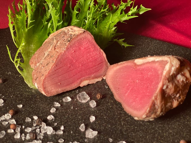 ほぼ脂肪がない鹿肉を柔らかいローストにしました。