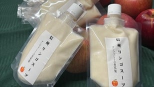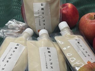 ここ最近では、農家さんの減少に伴ってリンゴの生産量が毎年減ってきています。 更に出荷基準の高さで廃棄になってるりんごも沢山出ている中、基準に満たないリンゴを使って何かできないかと思い、色々な商品を開発している一環でスープを作ってみました。農家さんの応援もかねて様々な人に味わってもらえれば幸いです。