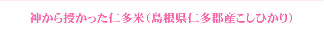 仁多米(にたまい)とは、島根県仁多郡奥出雲町で収穫されるイネの品種コシヒカリの産地ブランドで、仁多郡は面積の約9割を占める豊富な森林に覆われ、雪解けの花崗岩から湧き出るミネラルたっぷりの岩清水が仁多米を育み、水田は標高300~500mにあり、この好条件に恵まれ生産され日本穀物検定協会の米食味ランキングでは、西日本で唯一「特A」を獲得した高評価の良質米。「東の魚沼コシヒカリ、西の仁多米」と言われています。