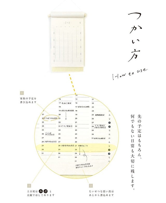 「千年もつ 」といわれる 和紙の特徴を 生 か し た、永く思い出を 残 し て お け る カレンダーです。