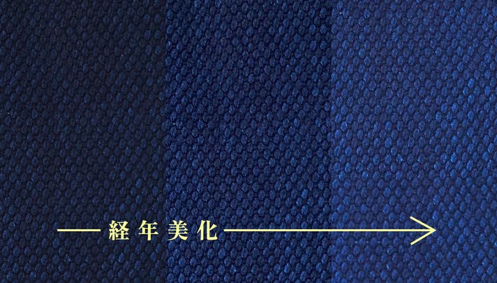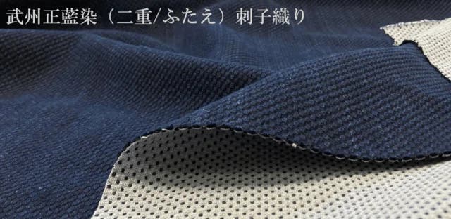 その中でもブランド藍染である武州正藍染刺子(ぶしゅうしょうあいぞめさしこ)生地を使用しております。