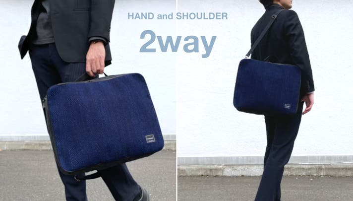 - 日常使いにも最適!毎日使いたくなる二刀流バッグ。藍染刺子織ビジネス&トラベルバッグ。