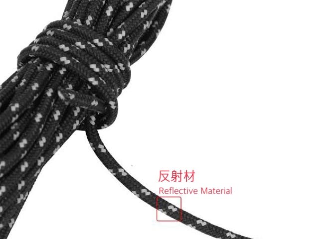 5mm反射パラコードの内芯は100 %ナイロンで、表地はポリエステルで外皮と内芯に異なる素材を使用することで、耐摩耗性と引っ張り強度を増強しています。