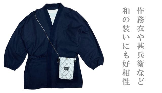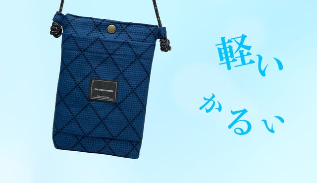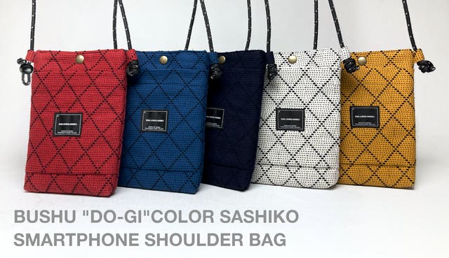 今回は日本の伝統を日常で、生活のあらゆるシーンで使っていただきたいという想いから『武州カラー道着刺し子』を使用し、”ミニバッグ”としても使えるちょっとした外出にも便利な『スマホショルダー』を作成しました。