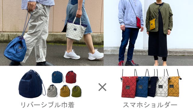 同じ武州道着刺子を使用した『巾着』と『スマホショルダーバッグ』の2点セット割