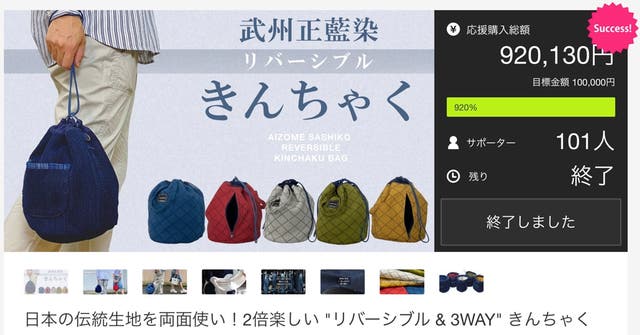 巾着のプロジェクトページhttps://www.makuake.com/project/enn_living_works_kincyaku/