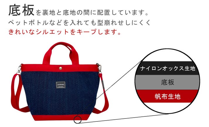 スマートながら大容量であり、帆布素材の底のマチがしっかりあるため、ランチボックスなどもスムーズに入れられます。