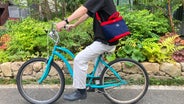 ●荷物でバッグが重くなりがちなシーンでも無理なく持てるのが魅力。両手を空けられるため、自転車での通学やアウトドアシーンではとくに重宝します。
