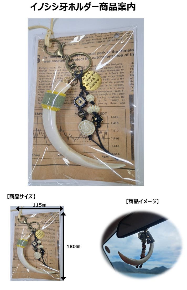 上島町特産品 柑橘ジビエ牙キーホルダー