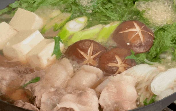 瀬戸内海の潮風と柑橘の香りを纏ったイノシシ肉と私たちが開発した濃縮野菜出汁、円奏ぽん酢、鍋ふりかけとともに季節の鍋として完成させました。