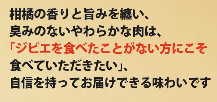 - 瀬戸内海の柑橘豊富な島で育ったイノシシの甘みと爽やかな香りをまとった柑橘ジビエ