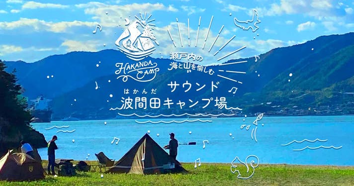 上島町の「サウンド波間田キャンプ場」は小さな入り江と堤防、小さな山に囲まれたプライベート感が高いキャンプ場です。目の前がビーチなので海水浴、釣りはもちろん、SUP、シーカヤックなど、様々なアウトドアレジャーに好立地です。