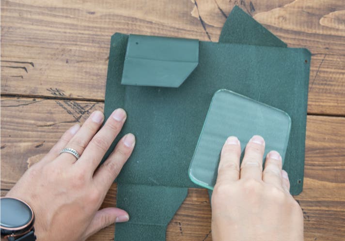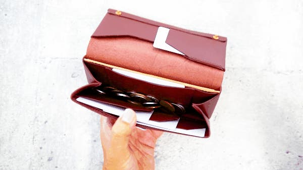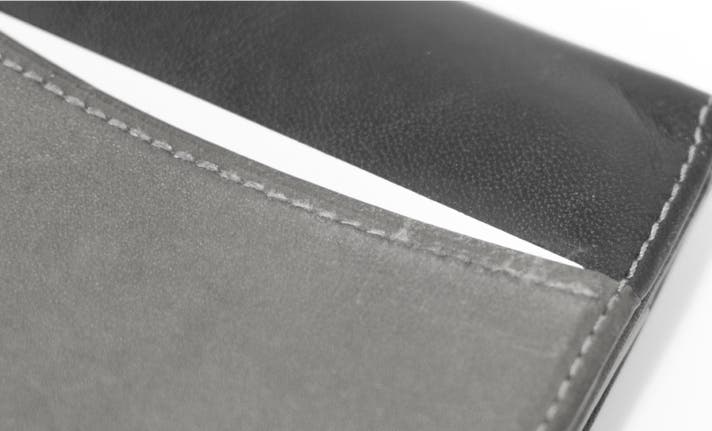 裏地の無い1枚革仕様のため、お札の滑りをよくするように、パーツ1つ1つ、