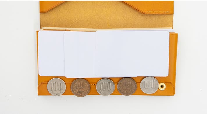 小銭とカードが重ならないようにレイアウトを工夫することで、全体の厚みを抑えることができました。