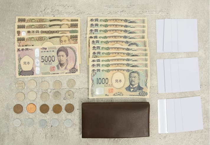 【推奨収納量】お札10枚、カード9枚、小銭15枚