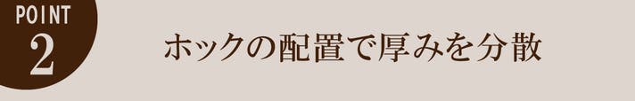 中心が多少膨らんでしまっても、ホックを両端の“膨らんでいない”位置に配置することで、全体の厚みバランスを調整。