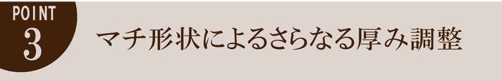 マチ部分は、上部から下部にかけて徐々に薄くなるテーパーデザイン。