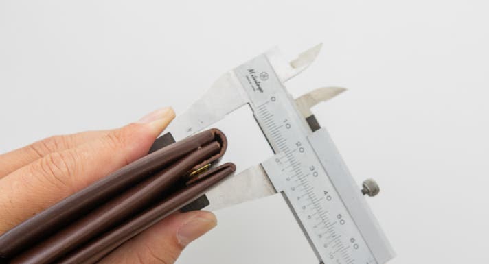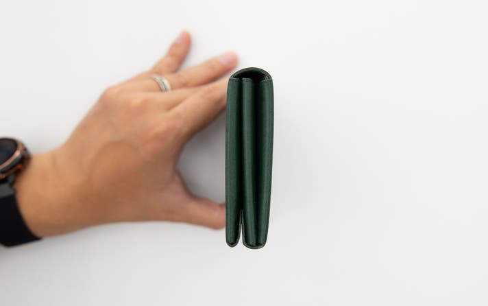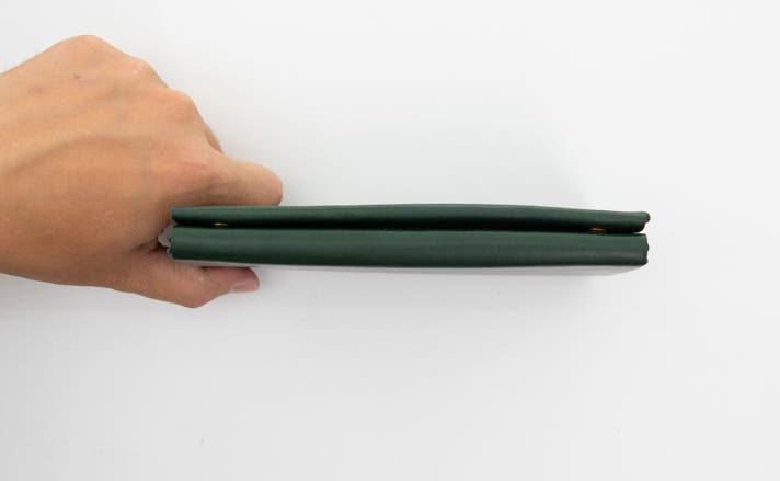 - 財布の表面に縫い目が無いから、ほつれリスクが非常に低く、ミニマルでスタイリッシュ