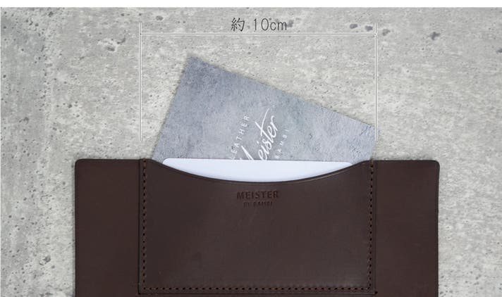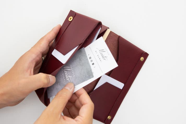 中央には3枚ほどをまとめて収納できる専用ポケットを設置。この中央ポケットはカードサイズよりもやや大きめに設計しているため、名刺やショップカードなど、サイズの大きなカード類にも対応できます。