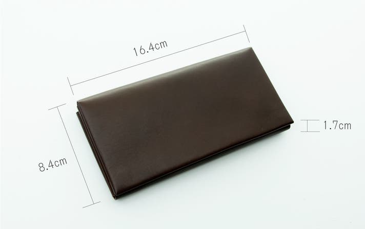 - 横幅16.4㎝ × 縦8.4㎝ 厚み1.7㎝の自社最小サイズのコンパクト長財布