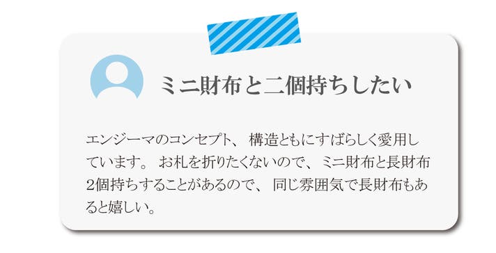 極薄小型財布「enzima」発売以降、商品開発をするにあたり、たくさんのユーザーから声を頂きましたので、一部紹介させて頂きます。