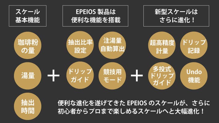 わずかな違いでも味に影響が現れると言われるほど繊細なハンドドリップコーヒー。EPEIOSの新型コーヒースケールはそのわずかな違いにも拘るプロ志向のユーザーにも満足していただけるよう、計量の精度を限界までアップデートしました。