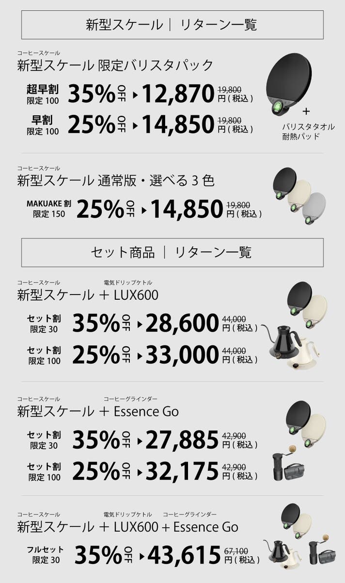 【超早割】新型コーヒースケール 限定バリスタパック 35%オフ