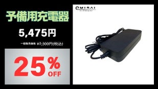 【オプション】イープラスミライ電動バイクBシリーズ兼用の予備用急速充電器