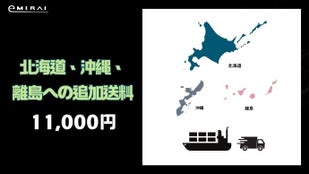 北海道、沖縄、離島への送料は別途11,000円が発生します。