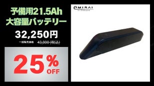・イープラスミライRHINO B専用の21.5Ah大容量バッテリーです。