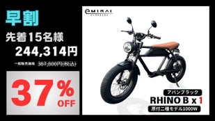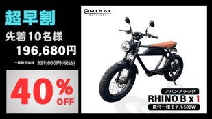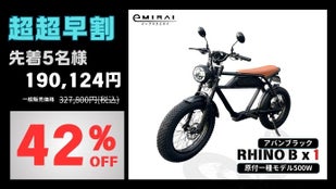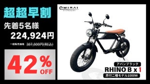- 快適・経済的・環境に優しい次世代EVバイク「RHINO B」で、新しい移動スタイルを始める。