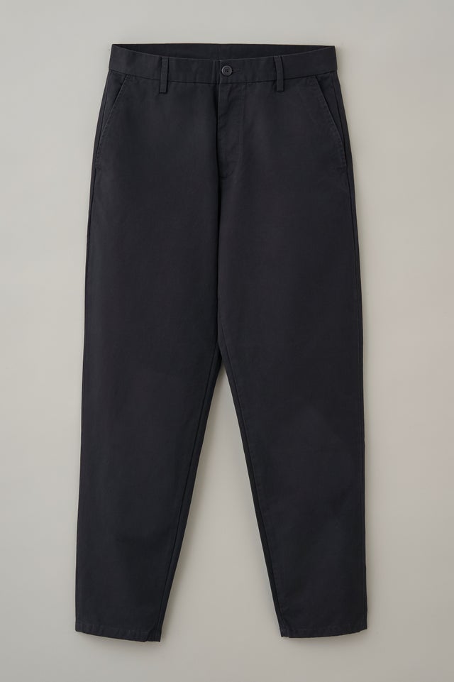 特に細番手のコーマ糸を使用した、コットンのチノクロスは、ギュッとつまった緻密な織りで、身体に馴染みやすい柔らかさと、パンツに最適なハリ・コシがあります。