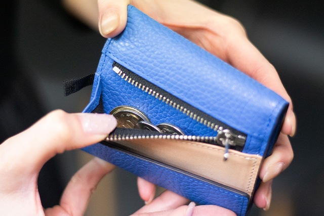 小銭入れは外側に付いており、財布を展開せずに取り出すことができます。