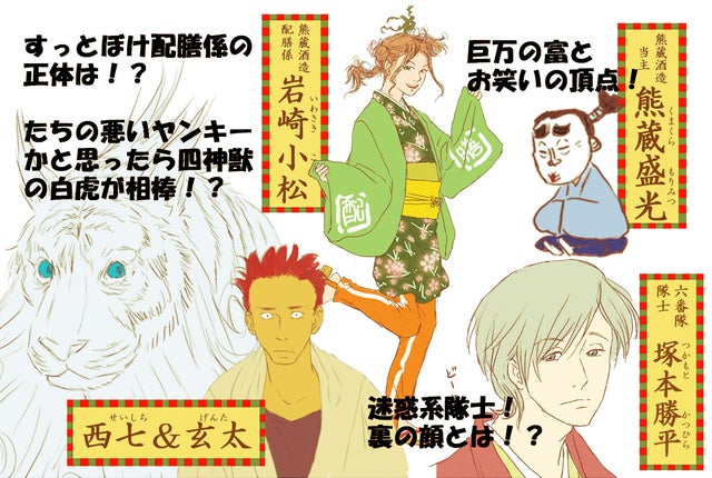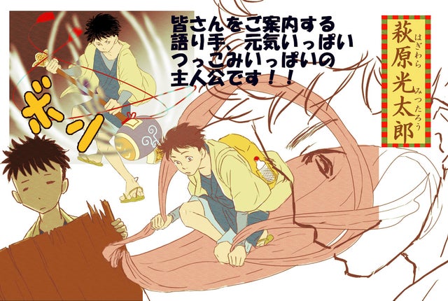 現代日本とはちょっとちがう、侍や忍者やもののけがいるパラレルワールドが舞台となっています。抜群の語りとつっこみで皆さんをご案内するのは番頭見習いの光太郎少年。ただのつっこみと思いきや、有象無象を圧倒する高戦闘力のつくも神を従えるおぼっちゃま(本人の自覚なし)。田舎から上京してきたものの、よくわからないまま天下分け目の大騒乱に巻き込まれていきます。
