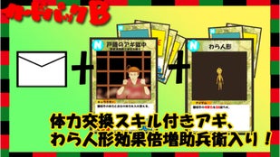 光太郎からお礼Makuakeメッセージ+キャラクターカード5枚(アギ獄中N、助兵衛N入り)+アイテムカード3枚(わら人形N他)