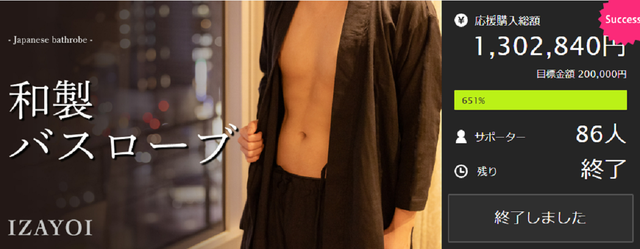 (前回の『和製バスローブ(IZAYOI)』は多くの方に応援購入いただき、誠にありがとうございました。)