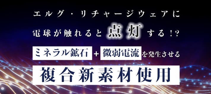 エルグ・リチャージウェアは、2006年から数々のトップアスリートの挑戦を応援してきたエルグ(日本)のミネラル鉱石応用技術と、マイクロ電流を発生する新素材として特許を取得した繊維メーカー(韓国)との共同プロジェクトで生まれました。睡眠中でもトレーニング中でも生体電流(1/100万㌂)程の微弱電流でアナタをサポートする2Wayウェアです。