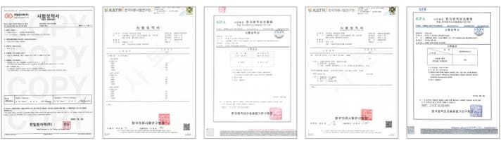 ラドン試験(Rn測定)、消臭率試験(ガス検知管法)、抗菌度試験(KS K 0693:2016 準用)、遠赤外線放射率および放射エネルギー測定試験、ミネラル繊維 安全性試験(有害物質検査)、陰イオン(アニオン)発生測定試験