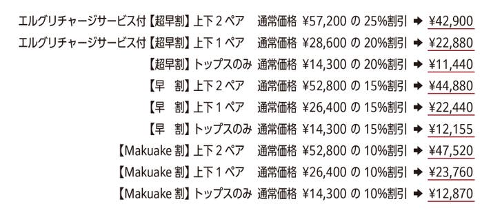 【超早割】25%OFF 上下セット2ペア(エルグリチャージサービス付き)