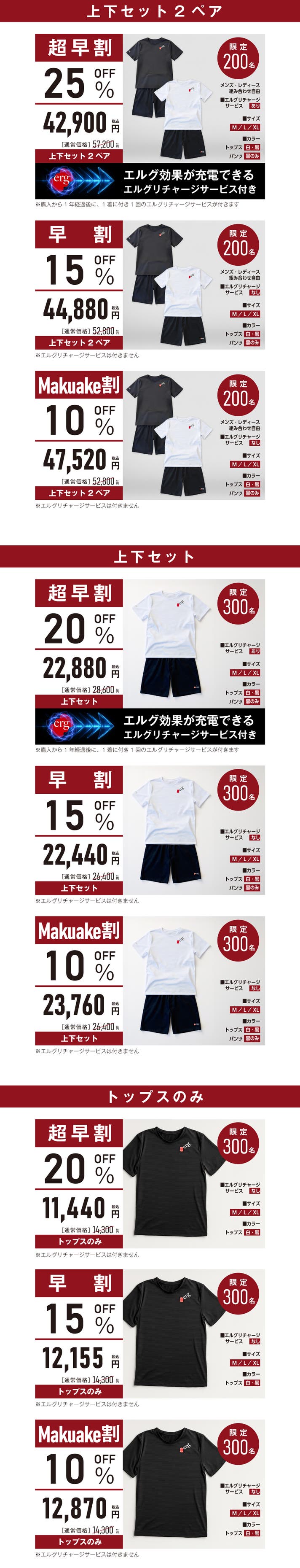 【超早割】20%OFF 上下セット(エルグリチャージサービス付き)