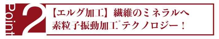 弊社が開発したエルグナイザー(電子回路)に通すことにより織り込まれた7種以上のミネラル成分へ素粒子振動をトラップさせています。これにより、エルグ独自の製品に仕上げています。