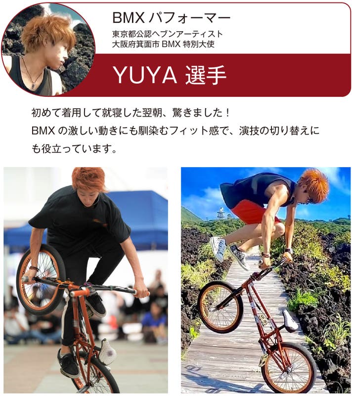 注記)サイズは複合新素材が肌に触れやすいよう、タイトフィットに設計されています。全方向ストレッチですので、睡眠時でも寝返りしやすい仕様となっています。