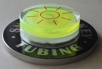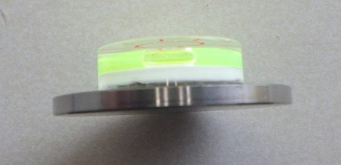 本品は、ゴルフ用ボールマーカーであって、ゴルフをプレーする際に、グリーン面上でゴルフボールの位置をマークするために用いられるものです。上部は斜視図に表れているように透明であって、その内側に充填された液体内に気泡が封入されており、地面に置いて、その気泡の位置を見ることで傾斜を把握することができます!