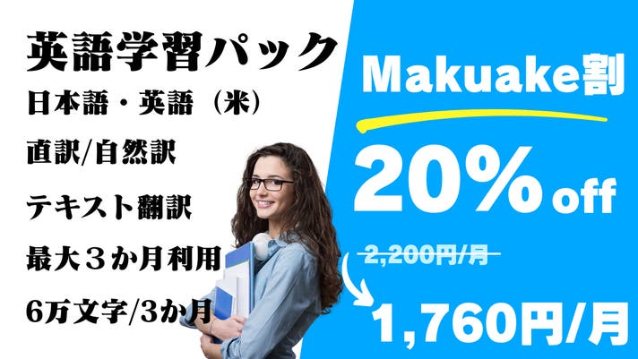 【英語学習パック】は、英語学習者に最適なパックです。英語と日本語の直訳と、自然訳がご利用いただけます。3か月で6万文字(日本語A4換算で約60ページ)がお使いいただけるライセンスが提供されます。