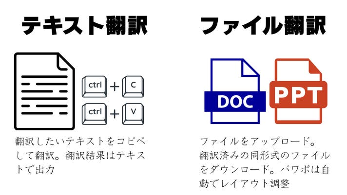ErudAite個人版では、テキスト翻訳とファイル翻訳(ファイル翻訳対応プランのみ)の2つをご用意。