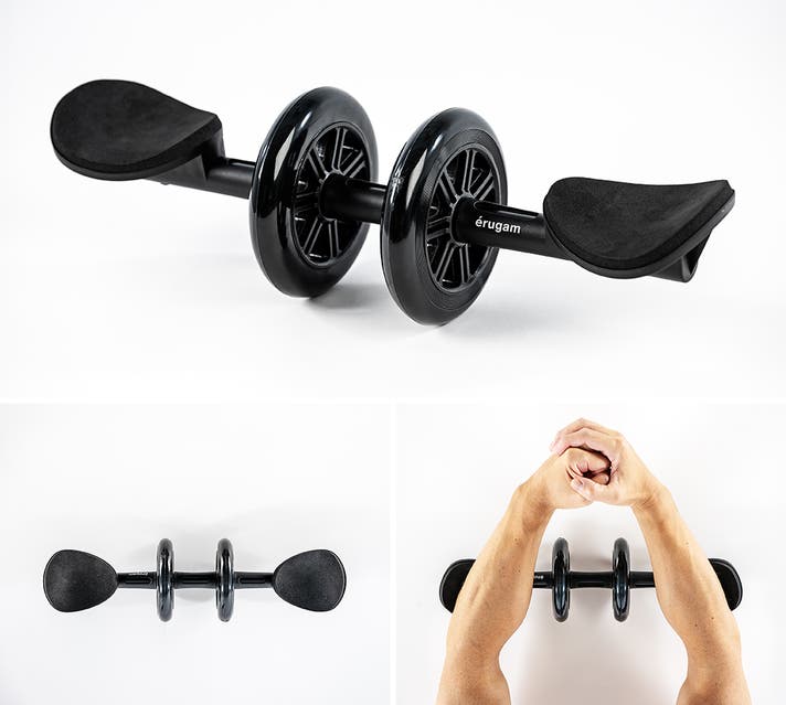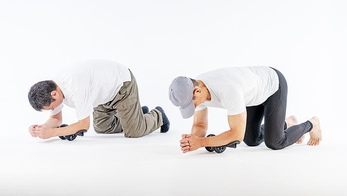 A: はい。筋トレが苦手なエルガムメンバーのひとりも、1日10回の “ひざコロ” を始めました。軽く腹筋を鍛えたい方にもおすすめです。ローラーの移動を少なめにすれば、負荷はひかえめになります。腹筋を「伸ばして、たたみ込む」──この動きを意識すると、腹筋への効きがよくなります。